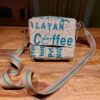 Kosmetiktasche aus recycelter Baumwolle mit liebevoll handgefertigten Applikationen im Stil eines Luftpostbriefes und Innenfutter